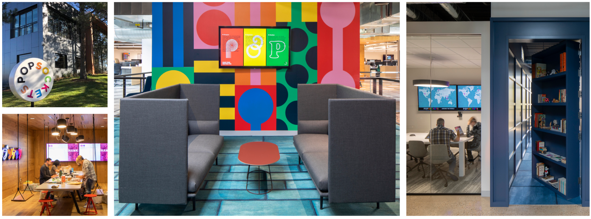 Agency: PopSockets in-house; CCO: John Kieselhorst; Concept and Visual Designer: German Murillo. From multiple narrative forms, visual design permeates our daily lives, transforming even the most common spaces. The signage design for PopSockets’ new headquarters, offered the perfect opportunity to energize the company’s spirit, into a new era celebrating its global presence, cool rebranding, and new expansion of the products line.