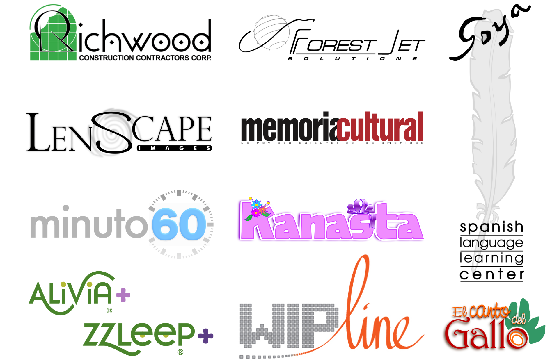 Brand Identity Designer: German Murillo. Richwood landscape and contractors, Miami,FL. Forest Jet Solutions, executive airliner, Ft. Lauderdale, FL. Goya Spanish Language Learning Center, Phoenix, AZ. Lenscape Images, creative boutique, Miami,FL. Memoria Cultural Magazine, Hollywood,FL. Minuto 60, Grupo Latino de Radio, Miami, FL. Kanasta Art, online gift shop, Arvada CO, CBD Products by DCM Pharmaceutical, Colombia. WipLine, online technology, Bogotá, Colombia. El Canto del Gallo, radio show, GLR, Miami, FL.