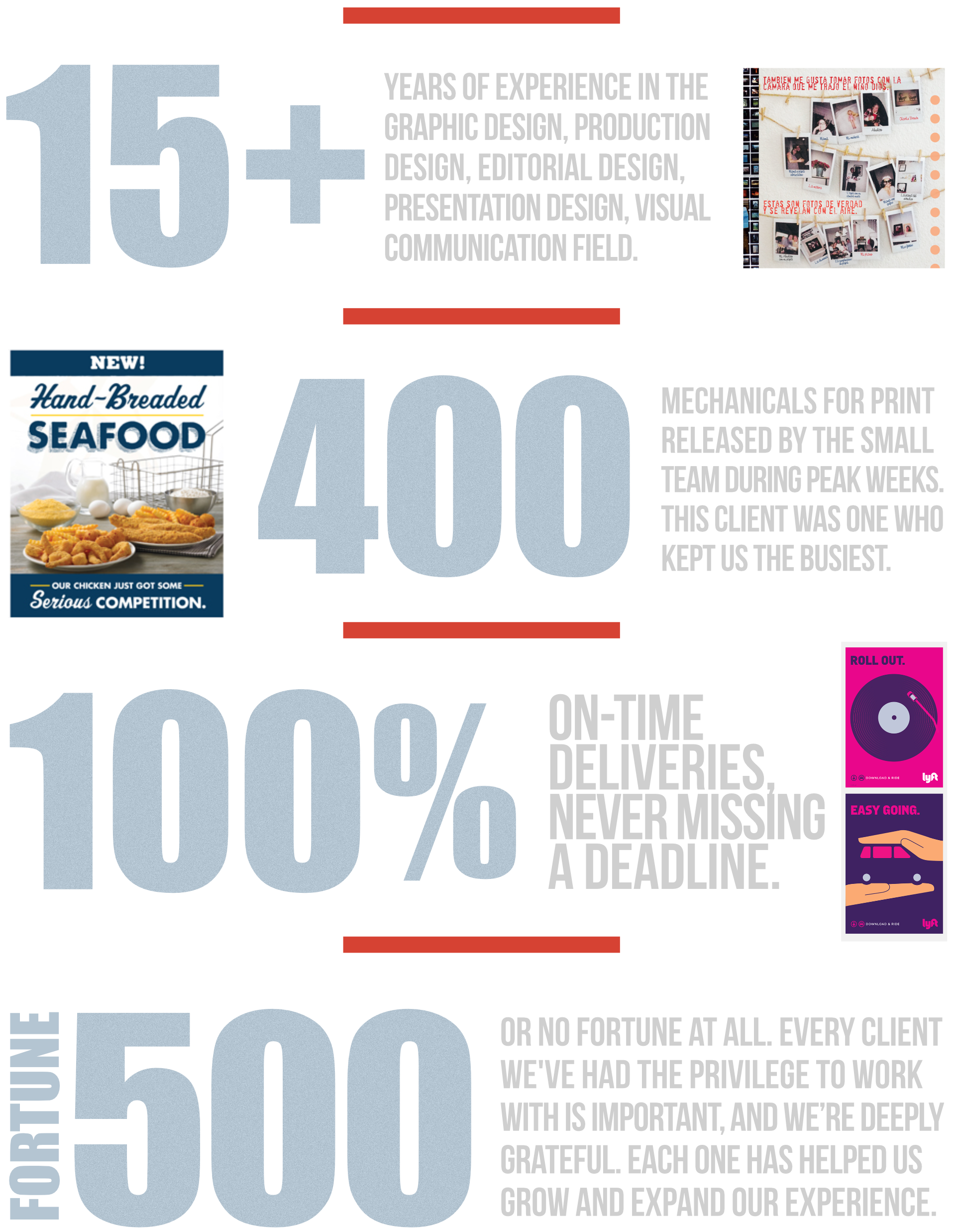 Incredible teams I'd been honored to be part of, PopSockets, the coolest phone accessory creators; Made Movement, with the mission to support the resurgence of works in America; and Crispin, Porter & Bogusky, the legendary and most innovative ad agency of it's time. On shorter runs very pleased to have supported Sapient, Lrxd, Integer, Esmeralda Farms, Lenscape, Intima, High Tech Avionics, Imer, Wax Communications, and let's stop there.